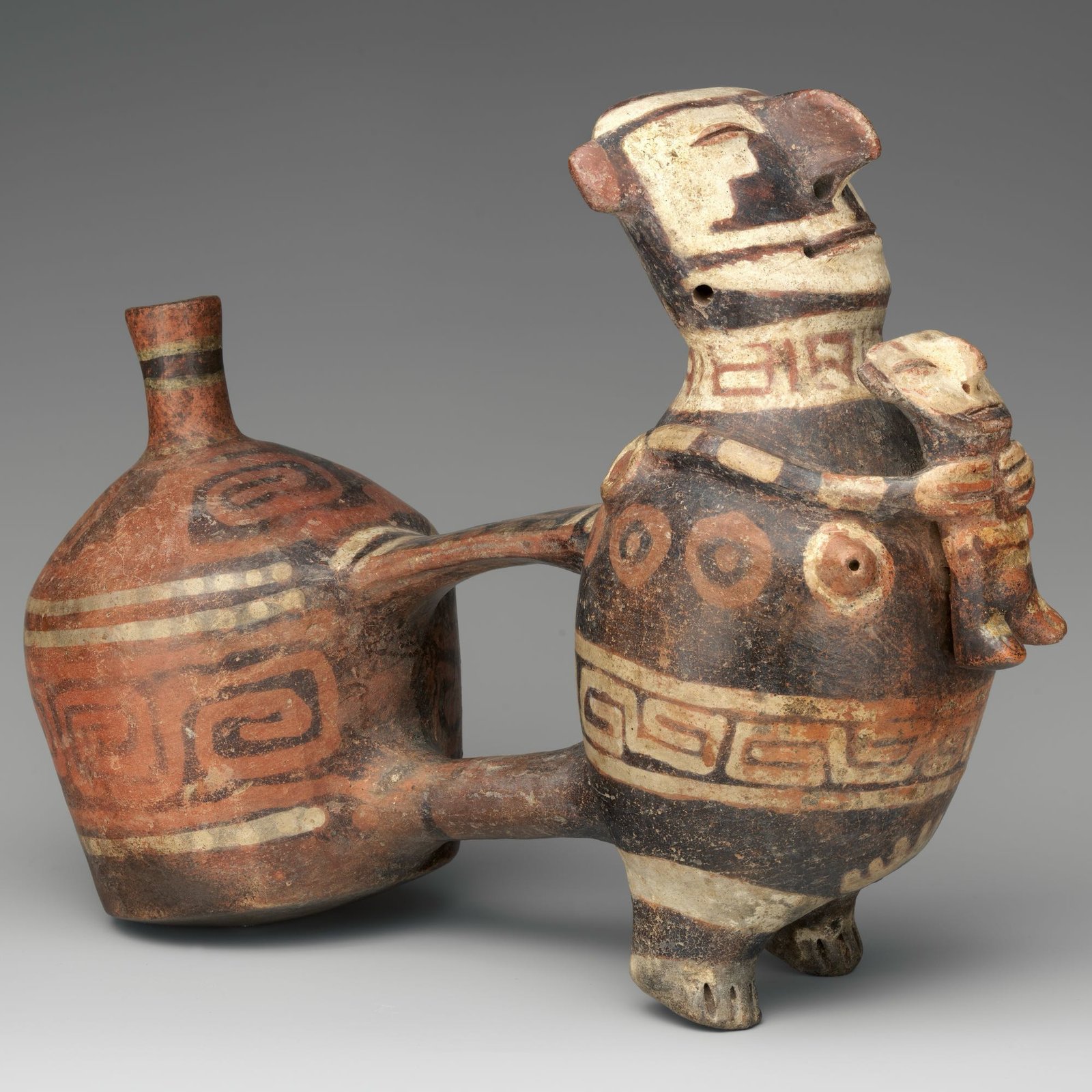 Peru’s pottery traditions stretch back millennia, creating a material record of cultures that understood clay as both utility and ceremony. The Vicús culture, which flourished in northern Peru’s Piura region from around 200 BCE to 600 CE, left behind some of the most distinctive ceramic forms in pre-Columbian history: whistling vessels that produced sound when liquid was poured, double-spout bridges that defied practical function for sculptural beauty, and forms that captured animals, deities, and the human experience with striking sophistication.