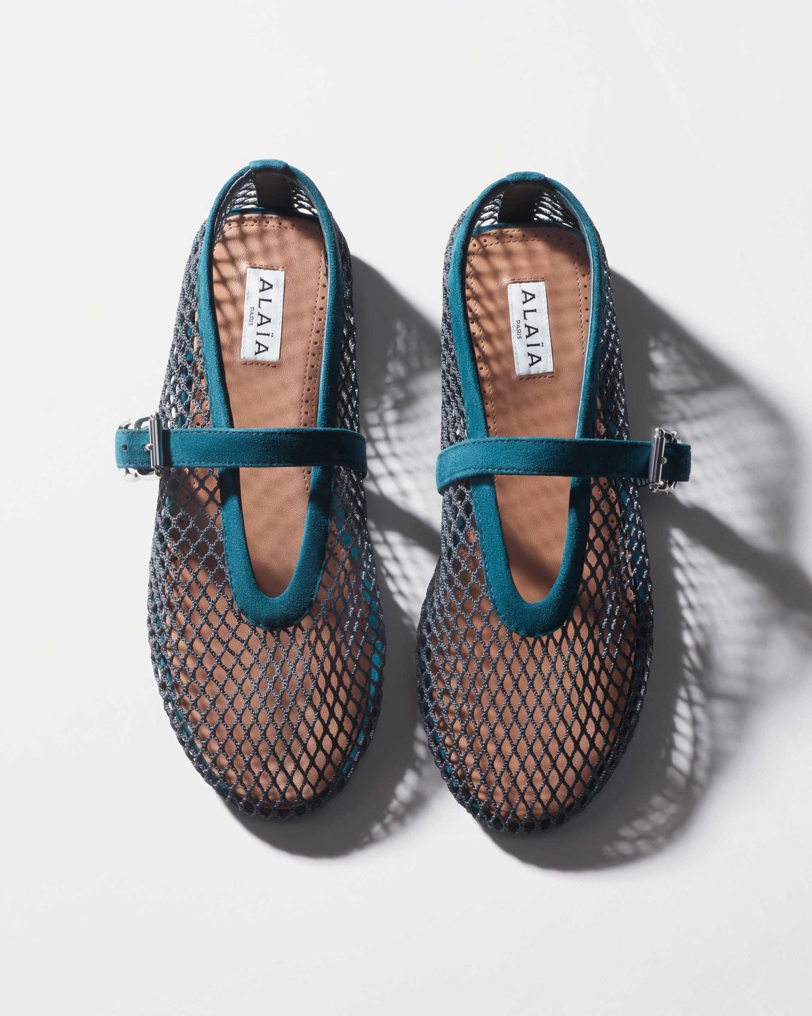 Alaïa has spent the last several seasons quietly rewriting what a flat can be, and their ballet flats may be their most compelling statement yet. The fishnet version is simultaneously architectural and effortless, the kind of shoe that looks best with the simplest thing you own. No heel, no fuss, no compromises—just a beautifully resolved silhouette that rewards a confident foot. For anyone who loved our low-profile fall roundup, this is the natural spring evolution.