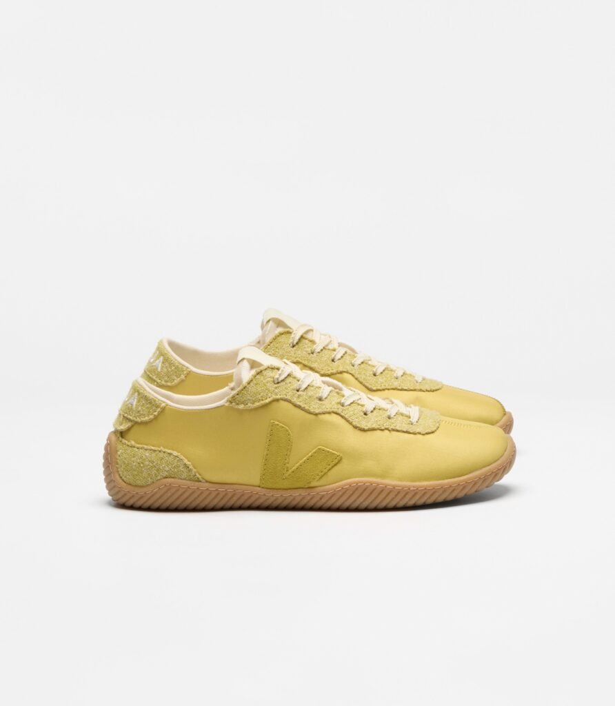 Veja has always had something to say—fair trade sourcing, Amazonian rubber soles, production rooted in transparency—but the Jitsu Nolyn, developed in collaboration with Franco-Danish label Baserange, says it with considerable style. Produced from organic hemp, wool, and recycled polyester, the silhouette is remarkably lightweight and fashion-forward. The Liquor Tilleul colorway—a warm, iridescent butter-gold—is the color of good light at four in the afternoon, and it flatters everything. This is the sneaker to reach for when you want to speak up without raising your voice.