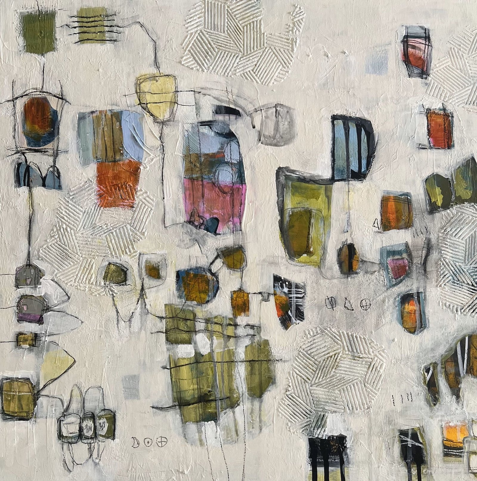 Spring arrives less like a revelation and more like a quiet reorganization. Something that was still is beginning to move again, and the movement is subtle enough to miss if you aren’t paying attention. Michelle O’Connor has been paying attention. The Chicago-area painter and mixed-media artist has spent years developing a practice rooted in exactly this kind of attentiveness—to surface, to layer, to the slow emergence of meaning from what, at first, looks like chaos. In a moment when the world outside feels louder and more fractured than most of us can comfortably hold, her work arrives as both a mirror and an invitation.