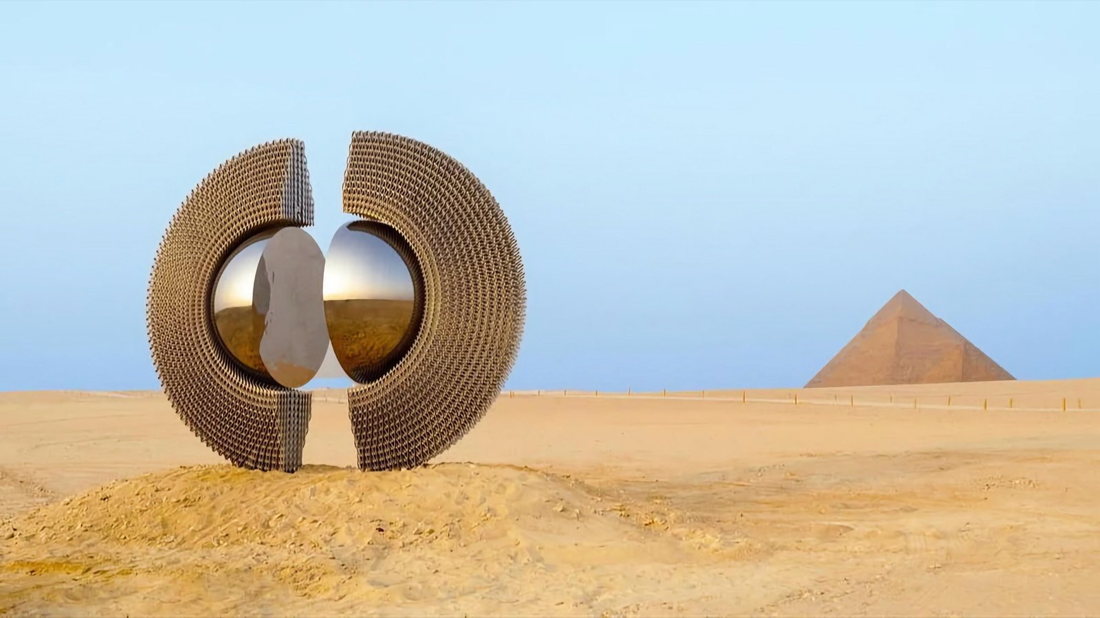 At the Giza Plateau, where mystery settles into stone and sand, Turkish artist Mert Ege Köse has inserted something that shouldn’t exist—yet somehow entirely belongs. The Shen, a monumental aluminum ring now gleaming across the desert, speaks directly to the Pyramids across 4,500 years of silence. It doesn’t compete with them. It frames them. It listens to them. In doing so, it reveals something profound about how contemporary art can honor the past without being imprisoned by it.